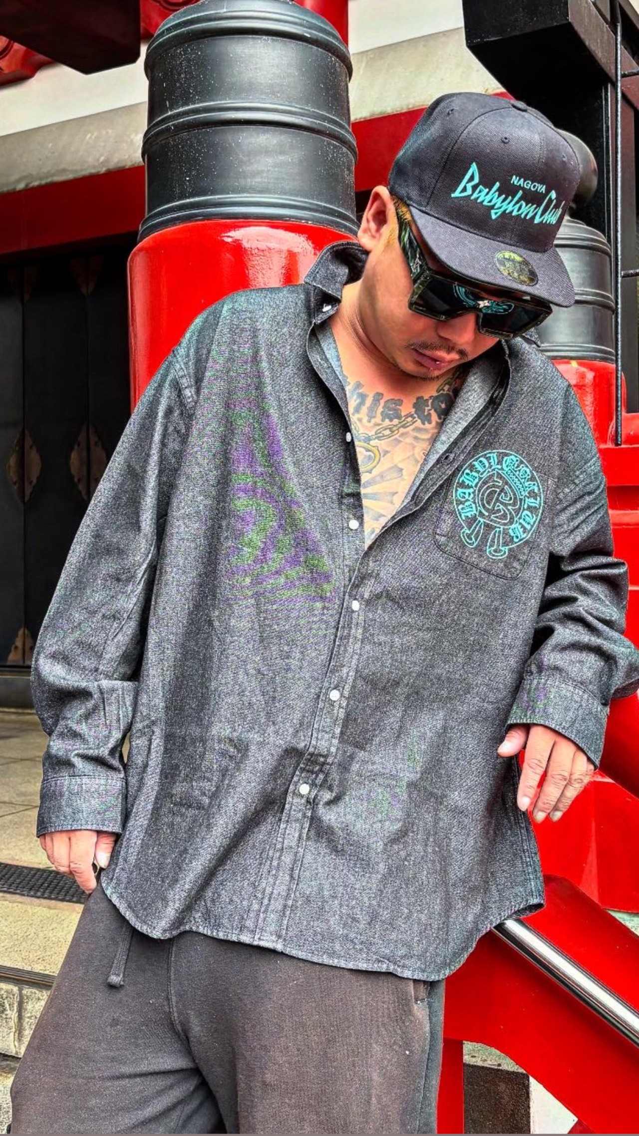 BABYLON CLUB CIRCLE LOGO DENIM L/S SHIRTS