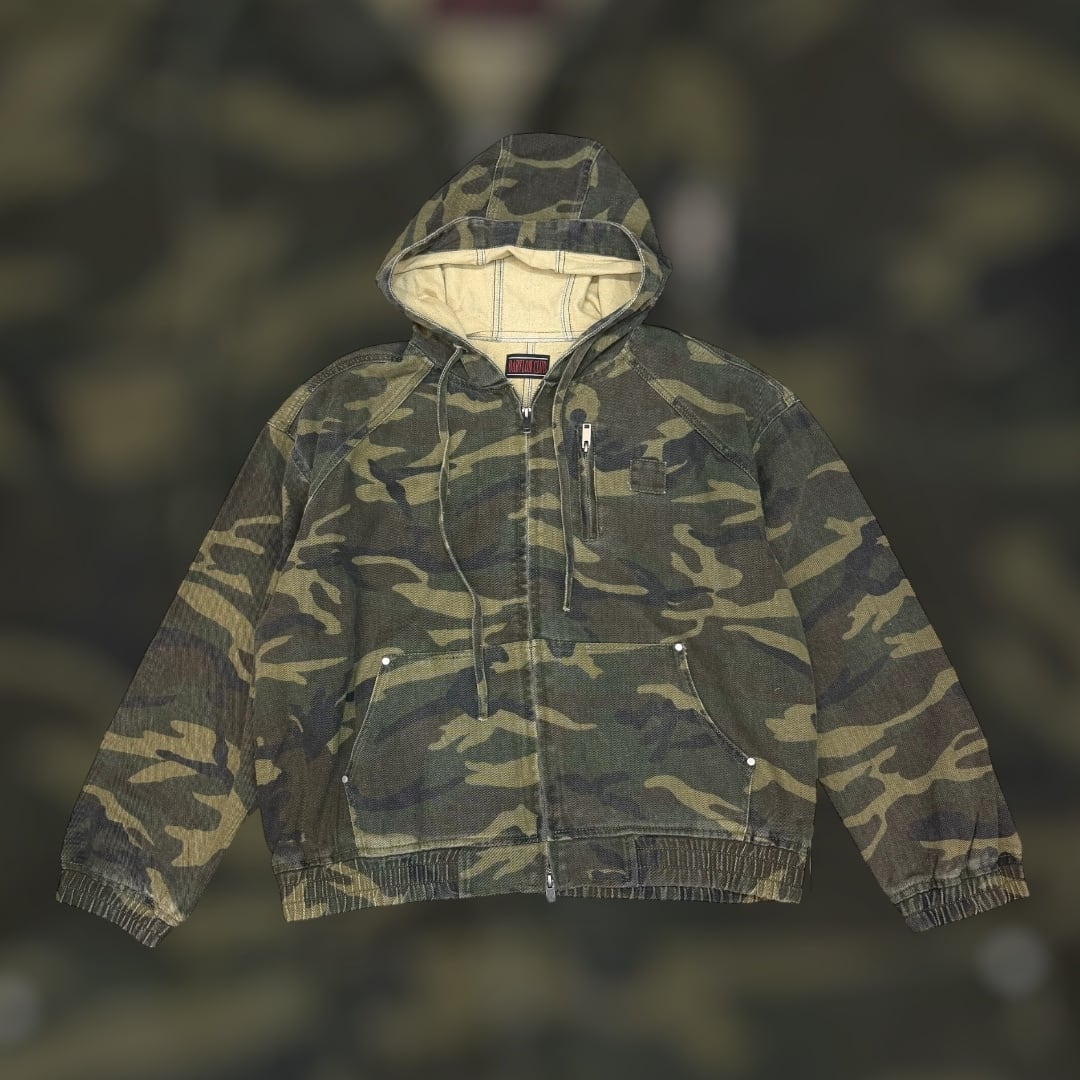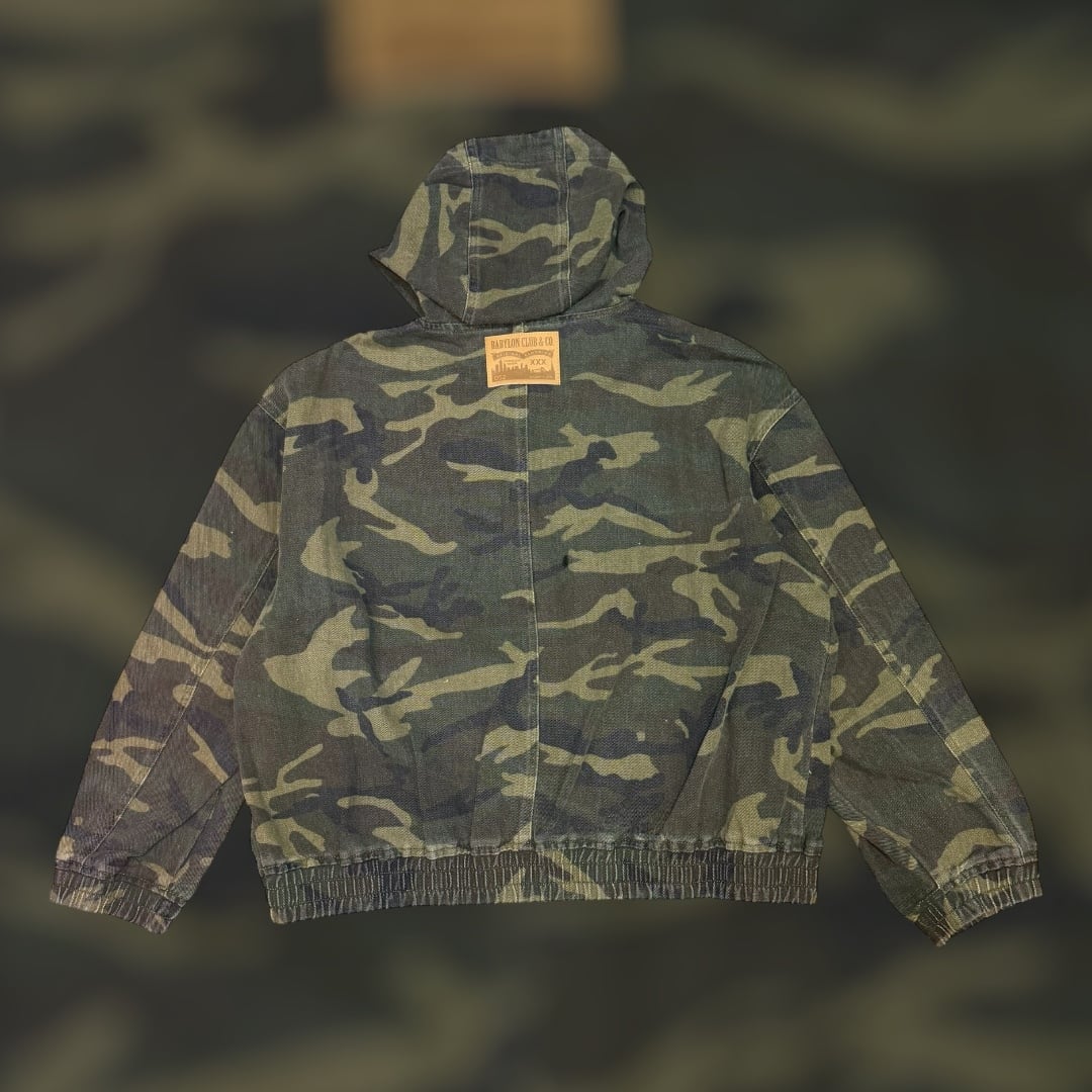 BABYLON CLUB LEATHER WAPPEN DENIM ZIP HOODIE -CAMO-