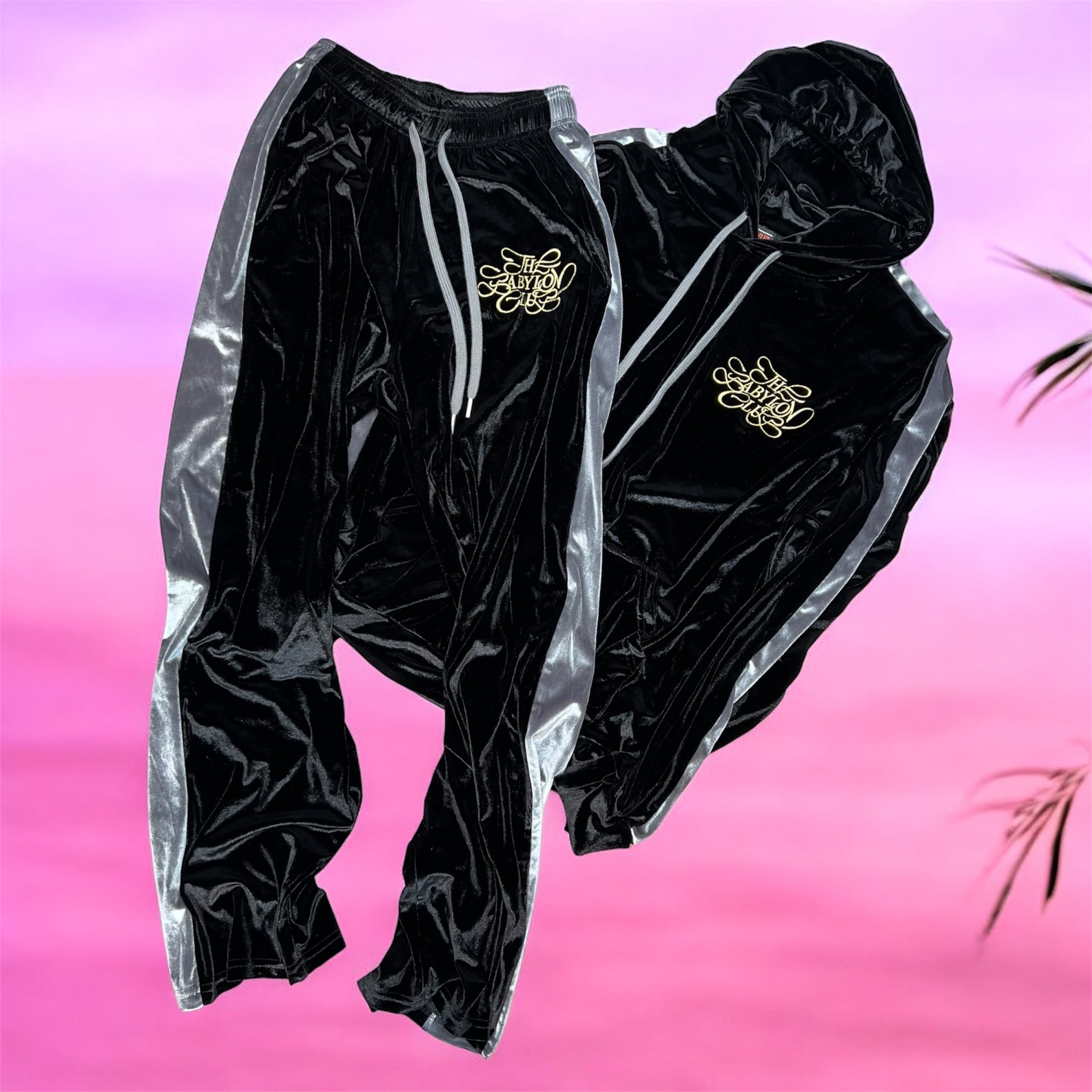 ベロアボディのセットアップにLUXURY LOGOロゴが施された高級感のある逸品。