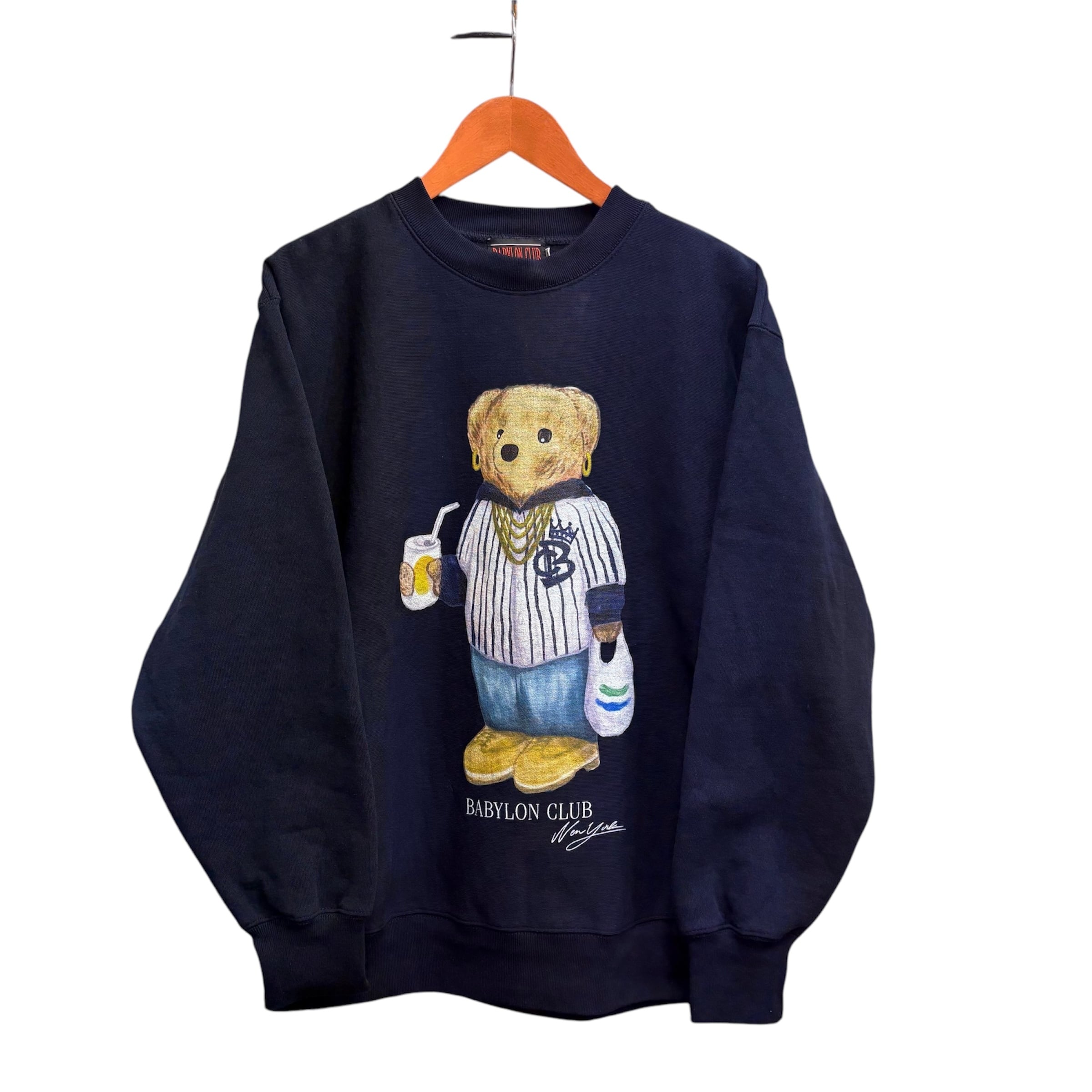 BABYLONCLUB BC BEAR CREW NECK SWEAT-NAVY-